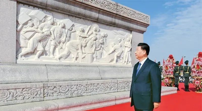 (2020年9月30日上午,党和国家领导人习近平、李克强、栗战书、汪洋、王沪宁、赵乐际、韩正、王岐山等来到北京天安门广场,出席烈士纪念日向人民英雄敬献花篮仪式。这是习近平瞻仰人民英雄纪念碑。新华社记者岳月伟/摄)