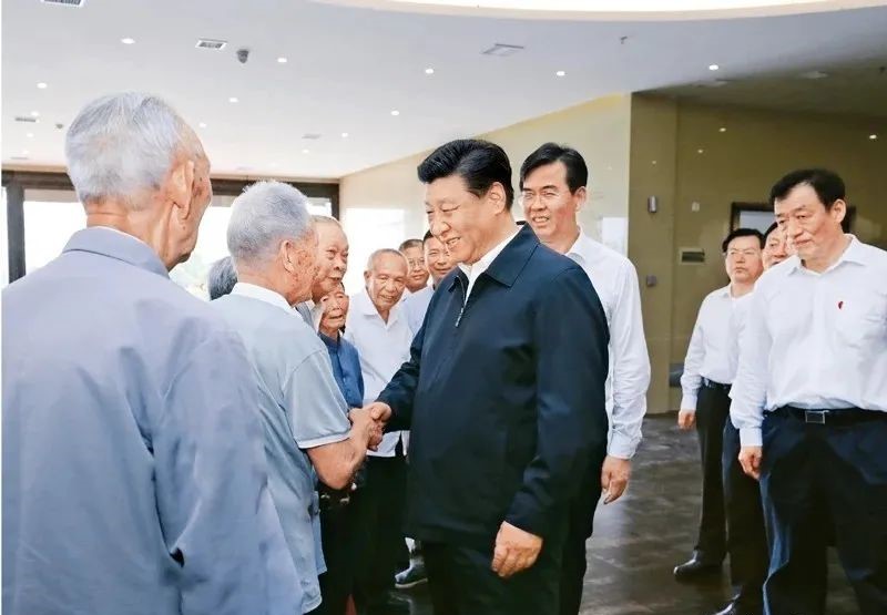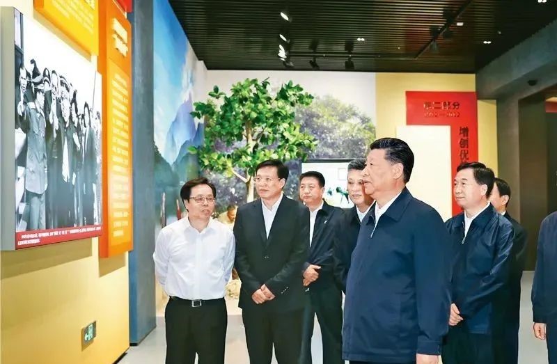 (2019年5月20日至22日,中共中央总书记、国家主席、中央军委主席习近平在江西考察,主持召开推动中部地区崛起工作座谈会并发表重要讲话。这是习近平在赣州市于都县中央红军长征出发纪念馆会见于都县的红军后代、革命烈士家属代表。新华社记者鞠鹏/摄)