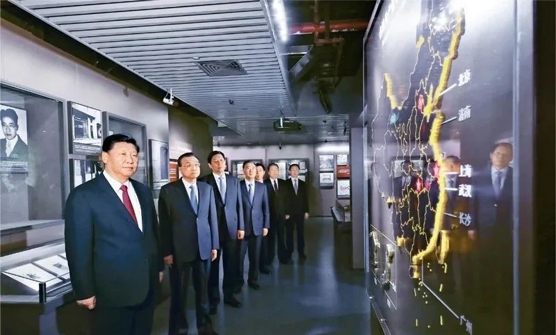 (2017年10月31日,中共中央总书记、国家主席、中央军委主席习近平带领中共中央政治局常委李克强、栗战书、汪洋、王沪宁、赵乐际、韩正,瞻仰上海中共一大会址和浙江嘉兴南湖红船。这是31日上午,习近平等在上海中共一大会址纪念馆参观。新华社记者兰红光/摄)