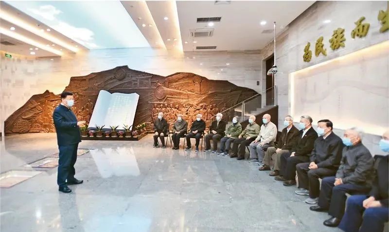 (2020年4月20日至23日,中共中央总书记、国家主席、中央军委主席习近平在陕西考察。这是4月22日,习近平在西安交通大学交大西迁博物馆亲切会见西迁老教授。新华社记者谢环驰/摄)