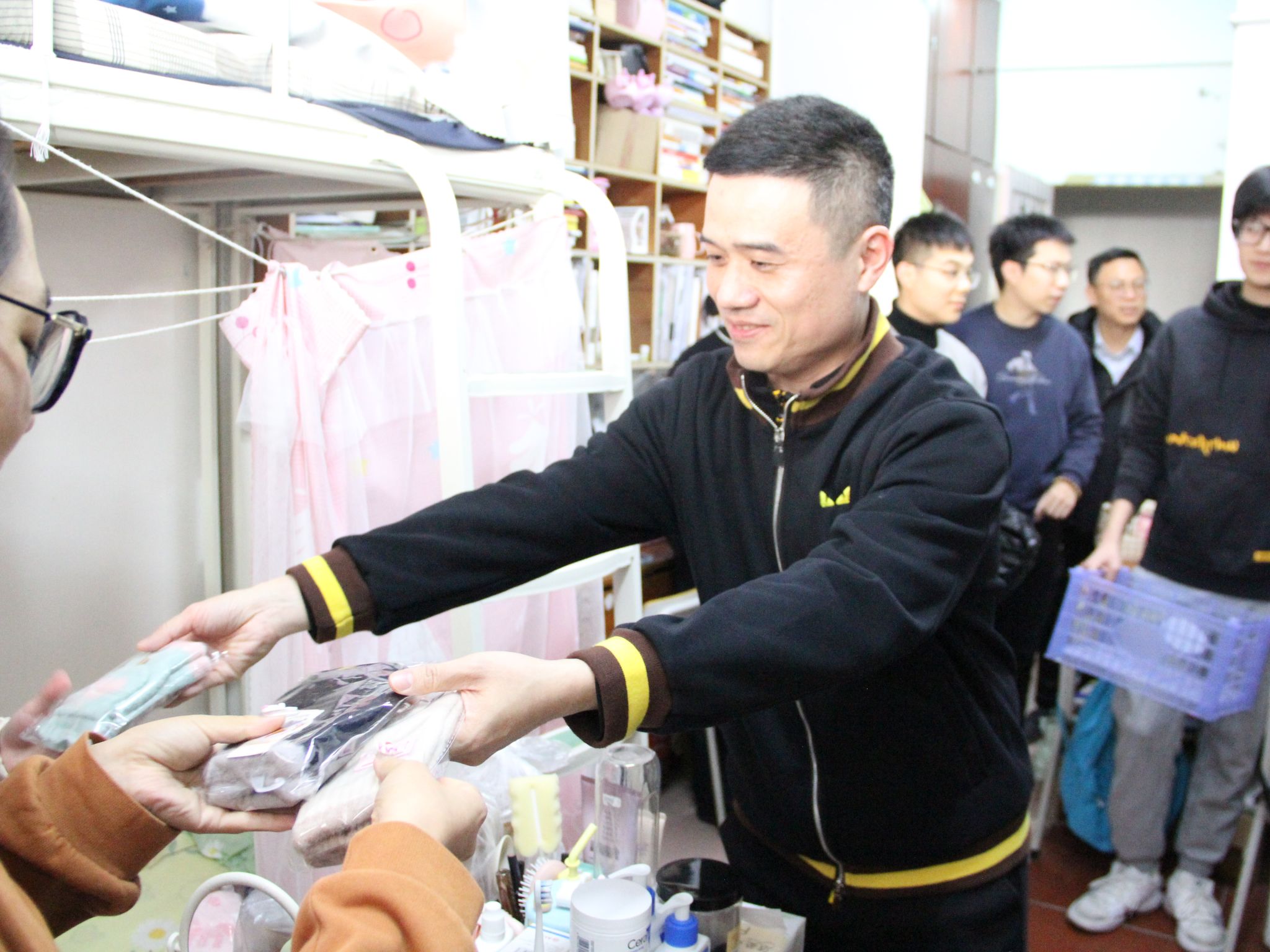 蔡滨与辅导员们还走访了瑞京永利23411集团宿舍区,深切关怀同学们的宿舍日常生活以及安全问题,并为同学们送上热气腾腾的汤圆和温暖的手套。与此同时,圆山校区辅导员陈雨婷和张崇燮深入圆山校区学生宿舍,开展走访慰问活动,拉近师生距离,让同学们感受到了学院大家庭的温暖。