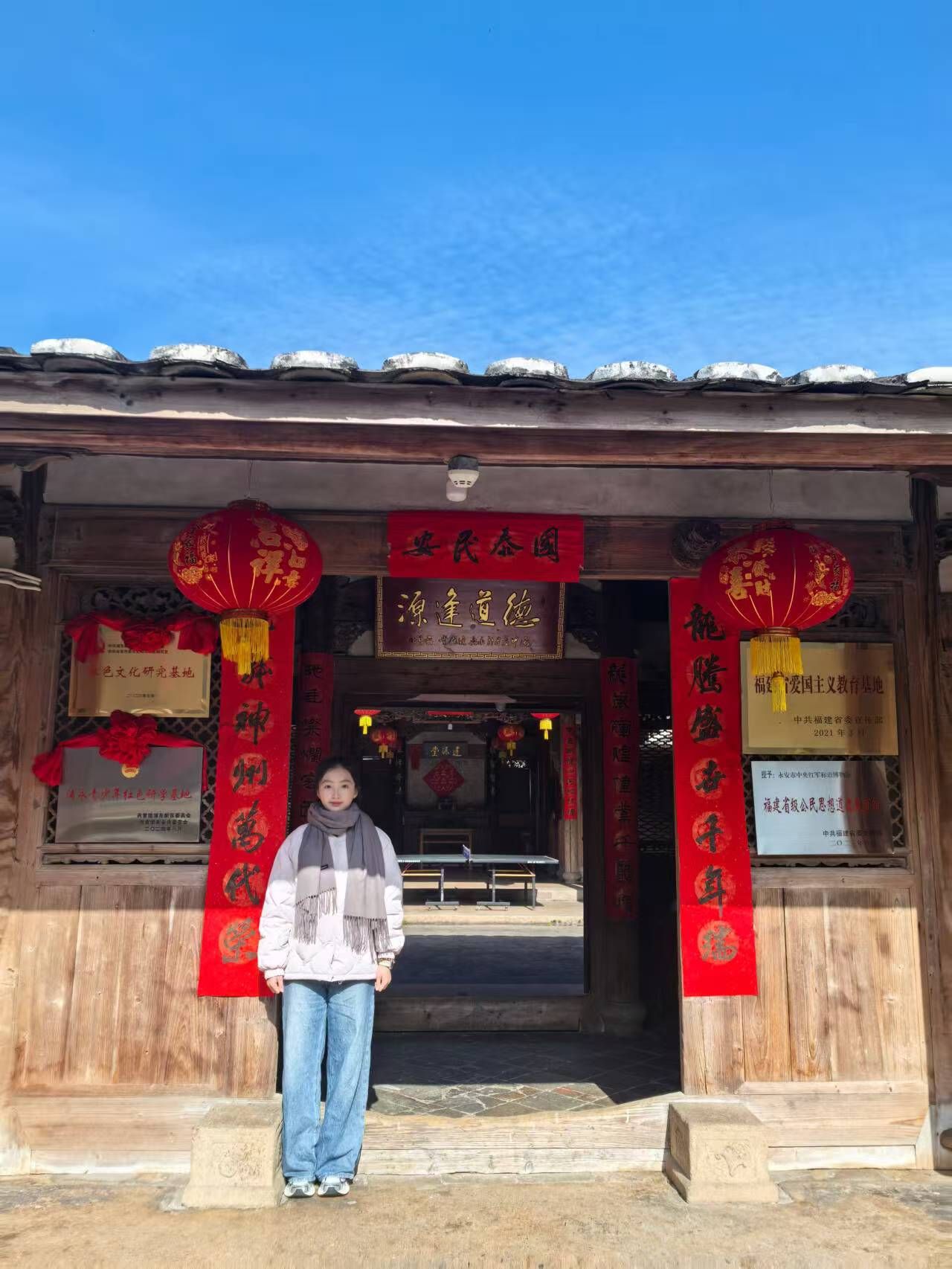 宣讲员钟紫墨参观了位于福建省南平市武夷山市的闽北革命历史纪念馆。青松翠柏、庄严肃穆,纪念馆由革命历史陈列馆、烈士事迹展厅和红色文化长廊等部分组成,巧妙依托闽北地区的革命遗址而建,最大限度地保留了历史的原貌,古朴的建筑风格与红色文化交相辉映,散发着浓厚的历史气息。作为重要的红色文化教育基地,馆内陈列着大量珍贵的革命文物和历史资料,“为革命奋斗到底”“不怕牺牲,勇往直前”,这些铿锵有力的标语,穿越百年时光,传递着时代的最强音。了解闽北的革命历史后,她表示:“先辈们在艰苦环境下为实现国家富强和人民幸福而不惜抛头颅洒热血的精神也将在未来的日子里激励我们无所畏惧、迎难而上,积极为党和国家的建设添砖加瓦。”