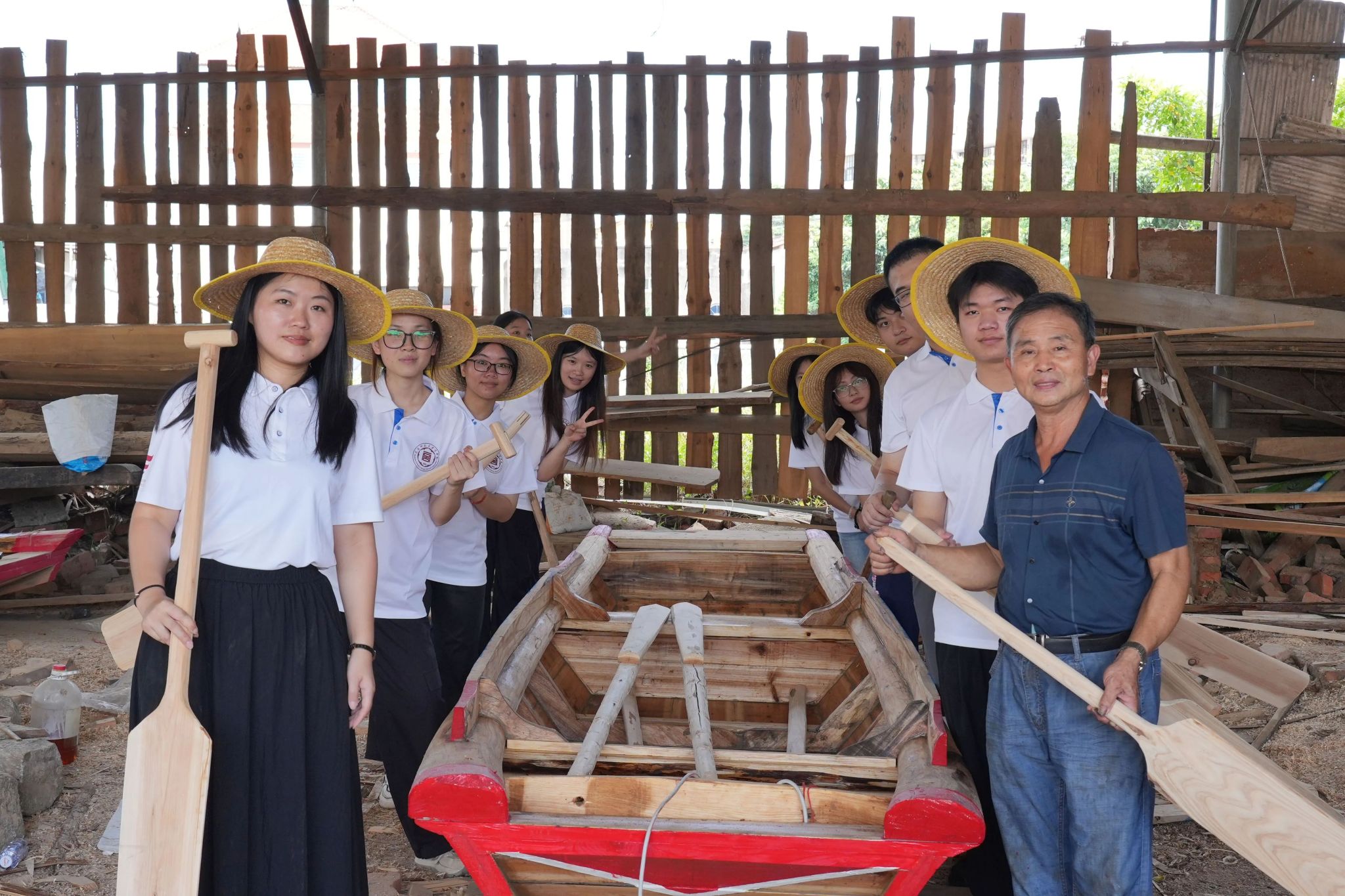 在福船制造厂,国家级非遗传承人郑水土师傅详细介绍了福船制造工艺流程及传承故事。通过亲身体验福船制造工艺,成员们深刻体会到传统工艺的博大精深。
