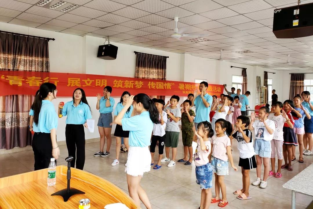 为进一步深入贯彻落实《关于实施2019年“七彩假期”青年志愿者关爱农村留守儿童志愿服务项目的通知》文件精神,加强志愿服务阵地建设,检验暑期社会实践成果,将中华优秀传统文化学习付诸实践、引向深入,更好引导大学生切实为有需要的农村留守儿童和随迁子女提供帮助和服务,7月30日,永利23411集团暑期社会实践团在院党委书记黄伟东的带领下,赴漳浦县石榴镇山城村开展留守儿童关爱活动。