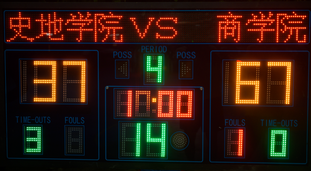 场上局势逐渐变得更加紧张,双方队员的目光也紧紧锁定着篮球,互相打着拉锯战,一边严防死守一边勇猛进攻。随着裁判的倒数“...三、二、一”,哨声吹响,比赛宣告结束,我院以67:37的成绩赢得了最后的胜利!
