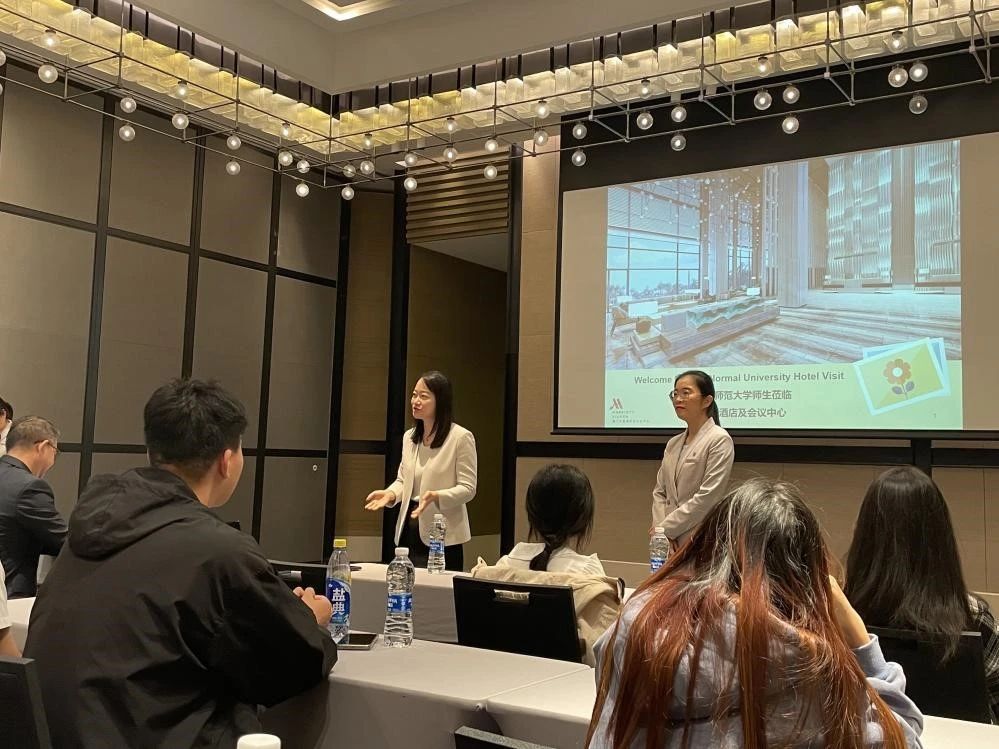 活动伊始,酒店培训经理为同学们详细介绍了万豪酒店及会议中心的基本信息,加深了同学们对万豪集团旗下的各种品牌、酒店概况、内部设施、服务理念、发展历史和运营管理的了解。