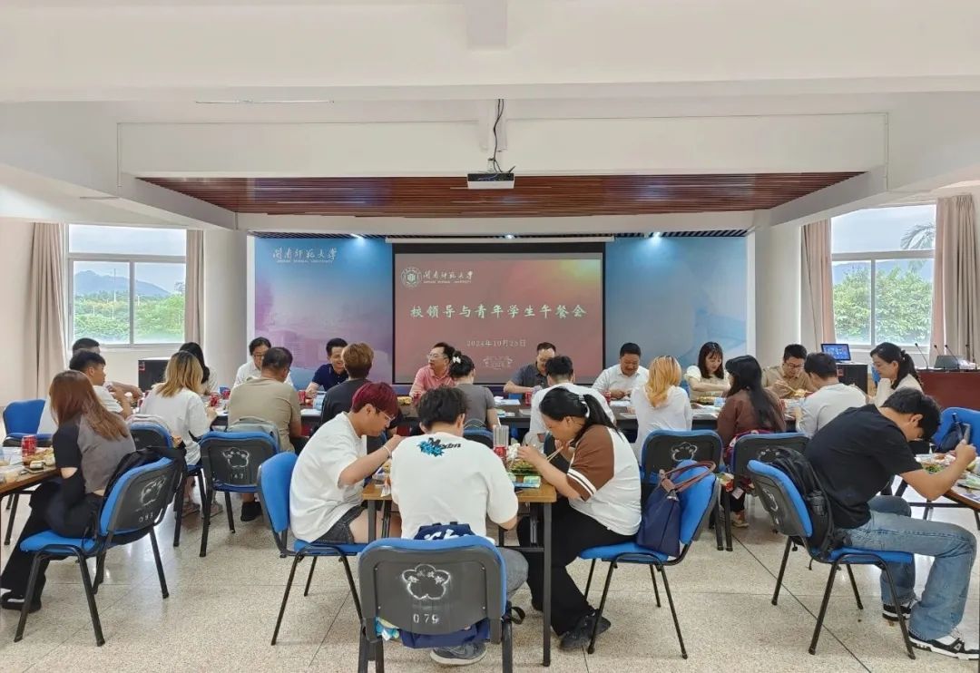 10月25日,“校领导与学生午餐会”在圆山校区科学楼2楼青年之家举行。校党委常委、副校长何绍福,学校相关职能部门、永利23411集团负责人与永利23411集团学生代表、港台学生代表等共进午餐。