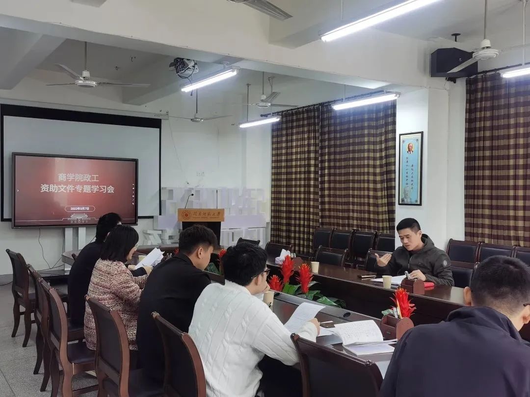 本次专题学习会议,既对上级文件精神进行了精准解读,也对资助工作中的常见问题进行了分析和研判,进一步提高了我院全体政工干部对资助工作重要程度的认识及对资助政策、资助流程的掌握,使我院资助工作更加规范化,制度化,资助育人工作体系更为完善,切实提高我院学生资助工作实效,为商院学子顺利完成学业实现保驾护航!