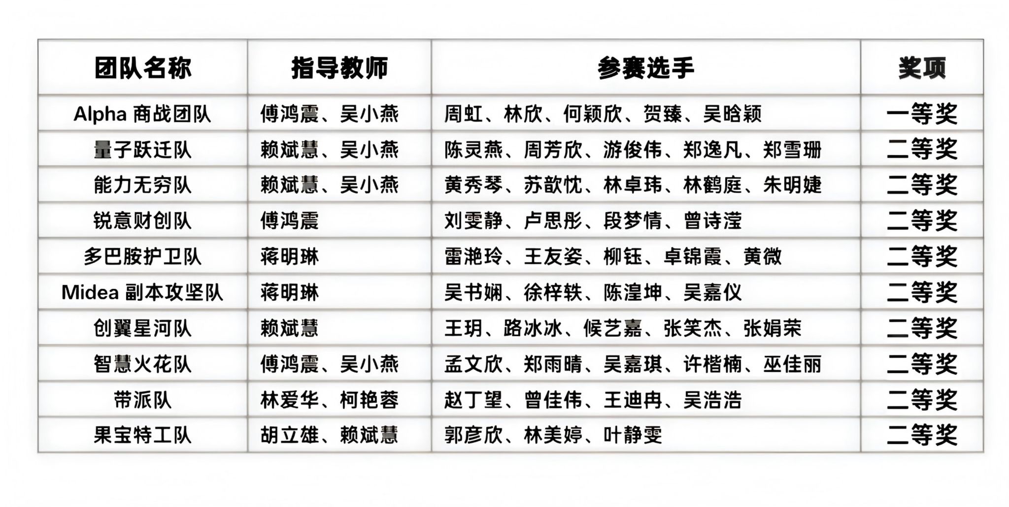 获奖名单