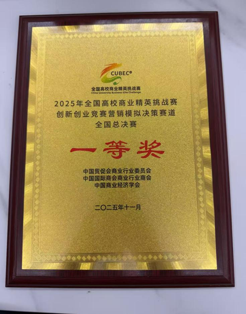 11月29日至30日,2025年全国高校商业精英挑战赛营销模拟决策全国精英赛在山东泰安圆满落幕。本届大赛吸引了全国近400所院校4000余支团队参与,近1200余支团队晋级全国总决赛,经全国总决赛选拔后进入线下精英赛。我院学子表现优异,在激烈角逐中脱颖而出,斩获国家级一等奖2项、国家级二等奖5项。与此同时,我校因组织工作严谨有序、保障有力,荣获“最佳院校组织奖”。
