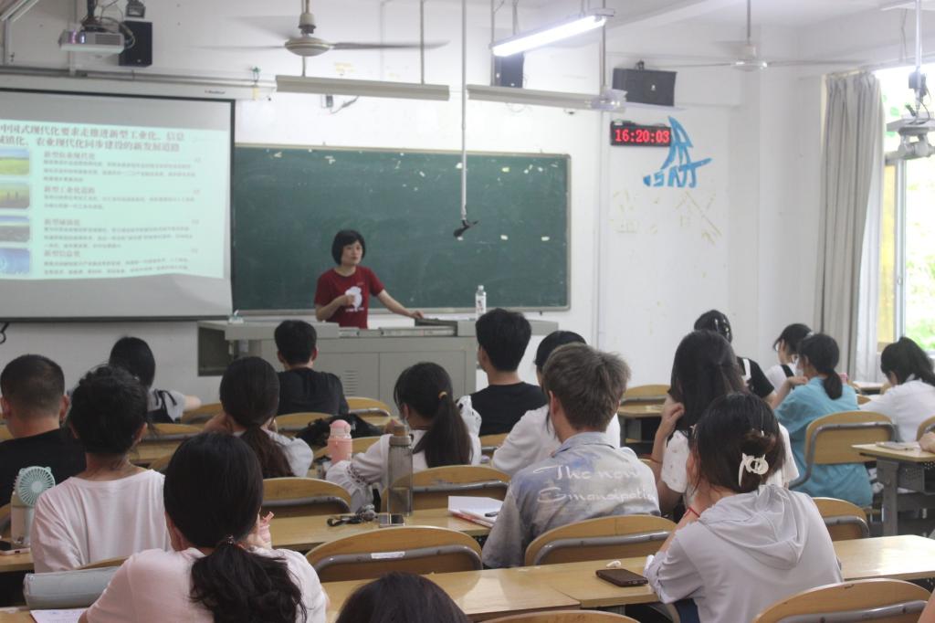 蒋晓莉老师以“中国式现代化的深刻背景与光明前景”为主题展开课程内容,讲述了中国式现代化的本质要求,带领同学们学习了新时代中国建设的伟大目标与规划。同时,蒋老师鼓励青年们汲取民族优秀传统文化,牢记“五个坚持”,以理论守护思想,用行动守护初心,在中国式现代化的光明前景中绽放绚丽青春之花。