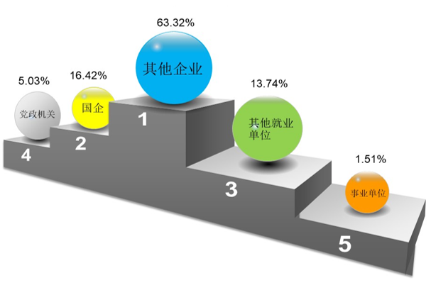 从就业单位性质上来看,2021届毕业生选择在党政机关工作的有30人;企业476人(国企98人,其他企业378人);事业单位9人;其他就业单位82人。