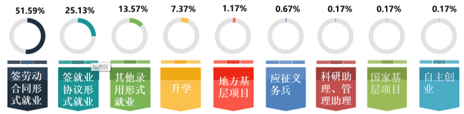 签劳动合同形式就业308人,约51.59%,签就业协议形式就业150人,约25.13%。