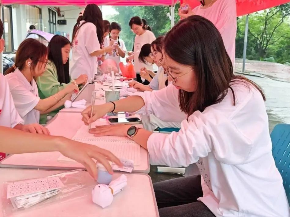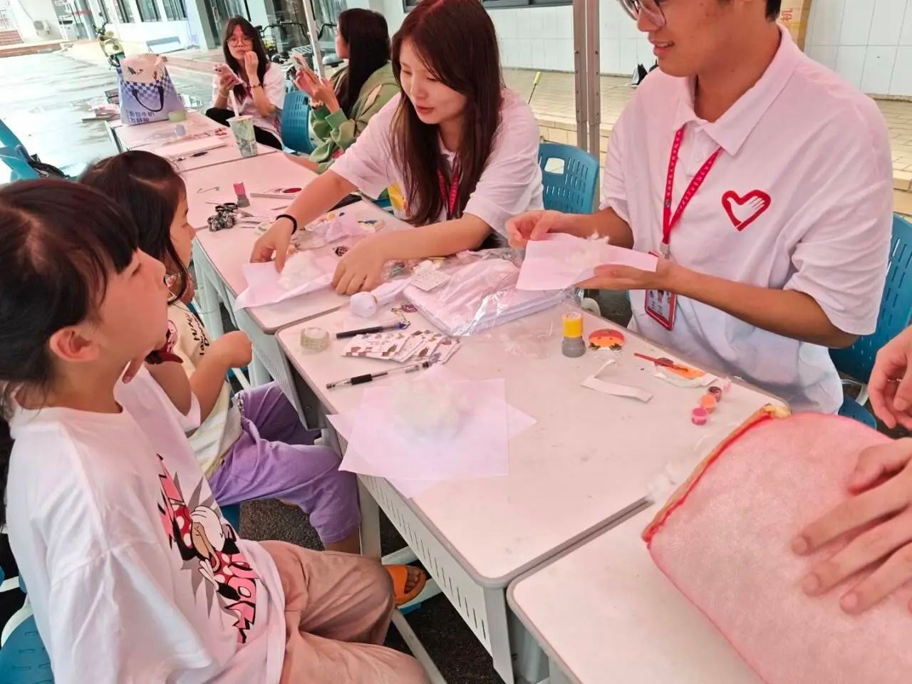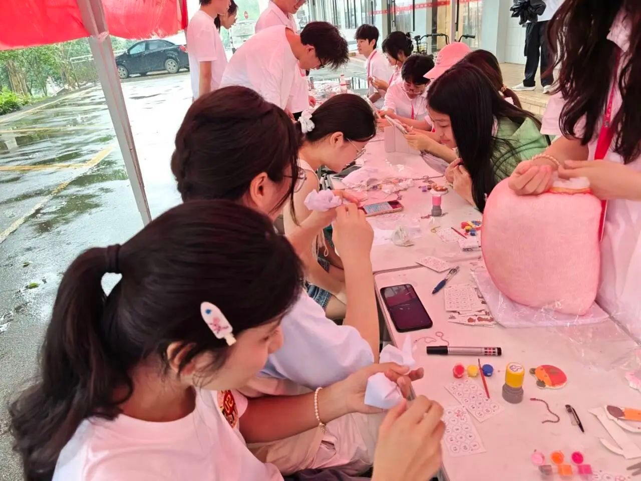 工作人员与同学们共同开展晴天娃娃手工制作活动。活动伊始,工作人员准备好手作材料,向同学们详细讲解制作方法与技巧。
