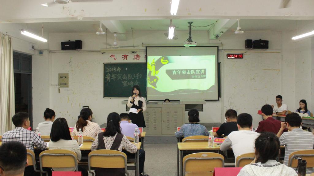 为了进一步推动我院共青团工作的开展,激发组织、干部的积极性和创造性,4月9日晚7时,我院于笃行楼312教室举行“青年突击队和青年突击手”评选宣讲会。院团委书记邱文芳,各组织指导老师、学生代表以及17级、18级各班团支书和班长参加了活动。