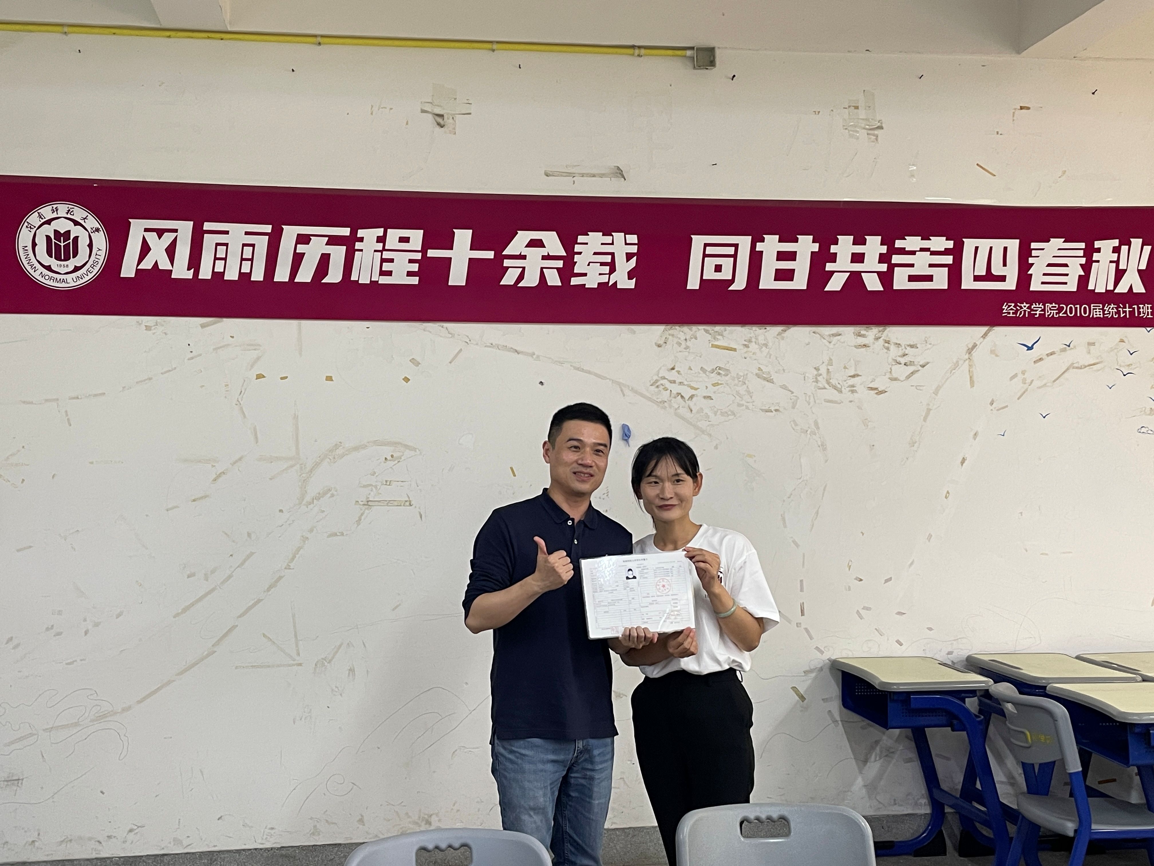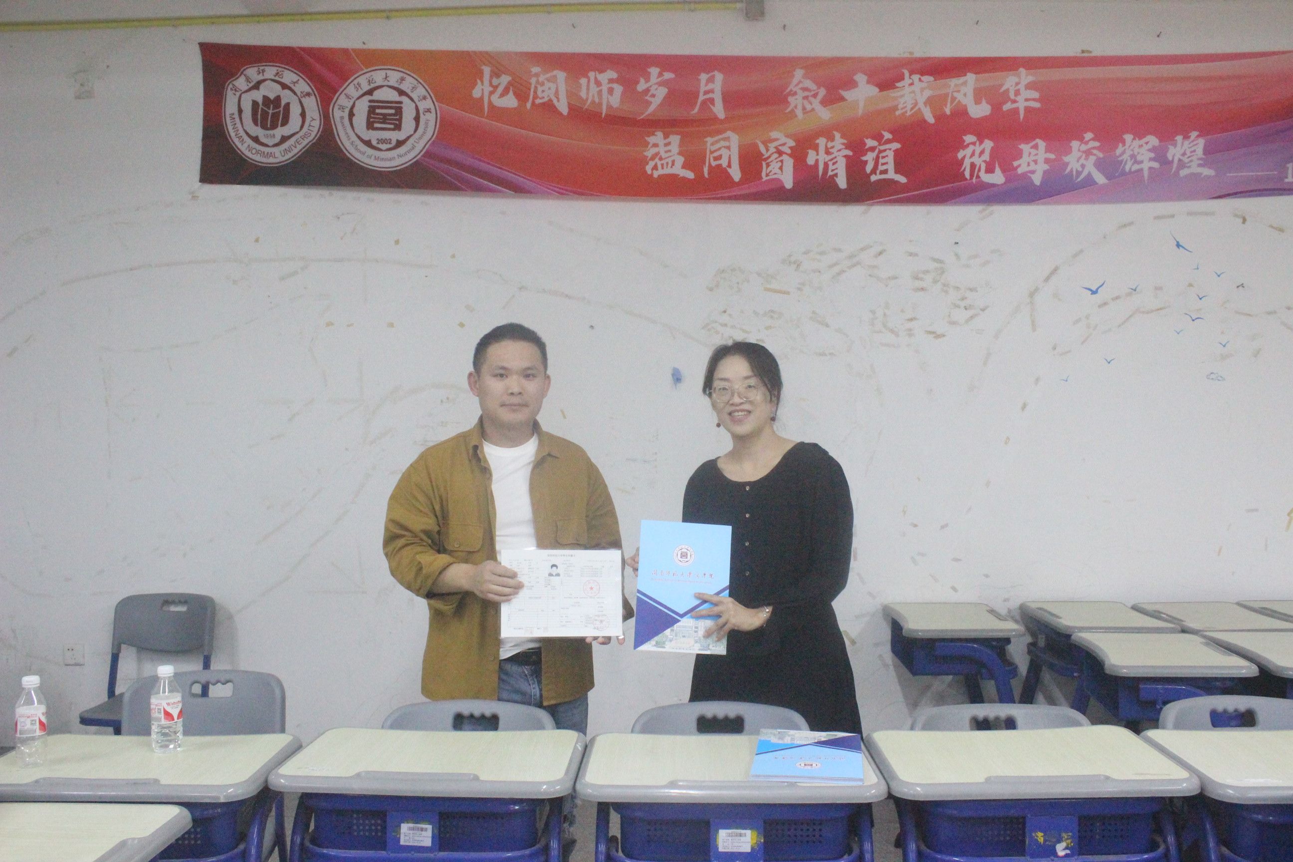 师生共忆往昔,现场热闹非凡。视频播放更是勾起了校友们的回忆。座谈会尾声,张惠萍向返校校友发放成绩报告单和学籍卡。傍晚,在场师生在笃行楼前合影留念,定格美好瞬间。
