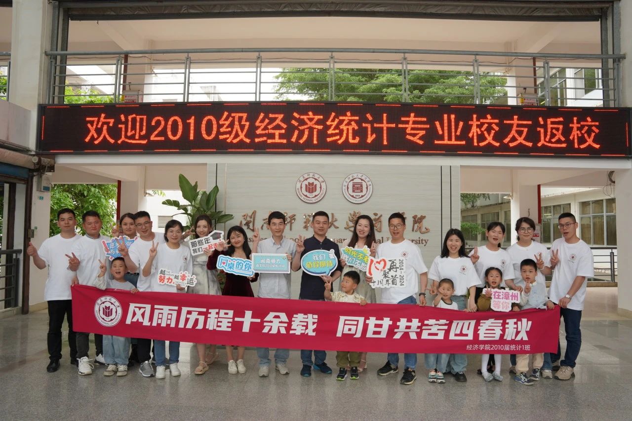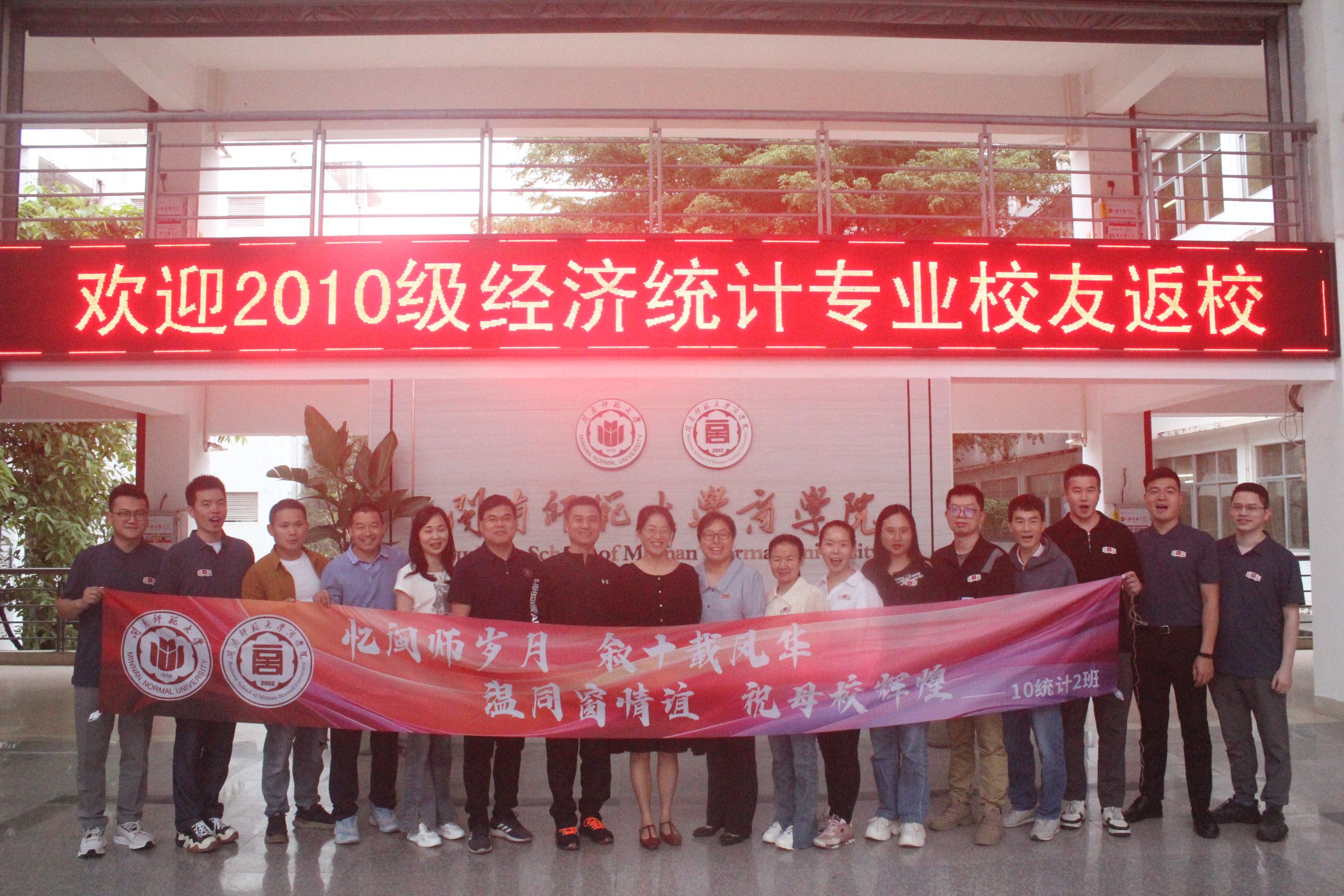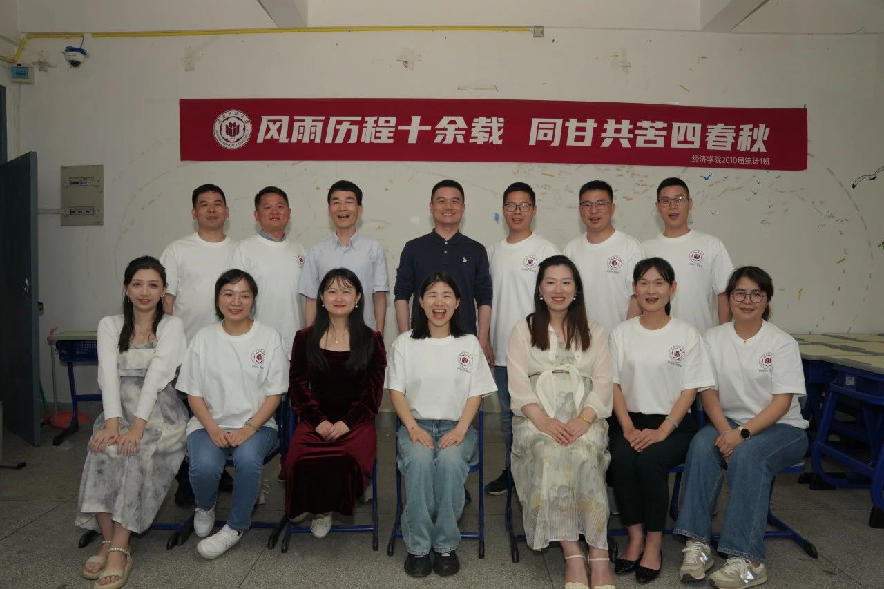 5月2日, 2010级统计2班十周年同学会如期举行。学院副院长(主持工作)乔红芳、党委副书记蔡滨、副院长何圣财、原院长张惠萍、教师代表张敏和席建国、原带班辅导员陈炜应邀参与活动。