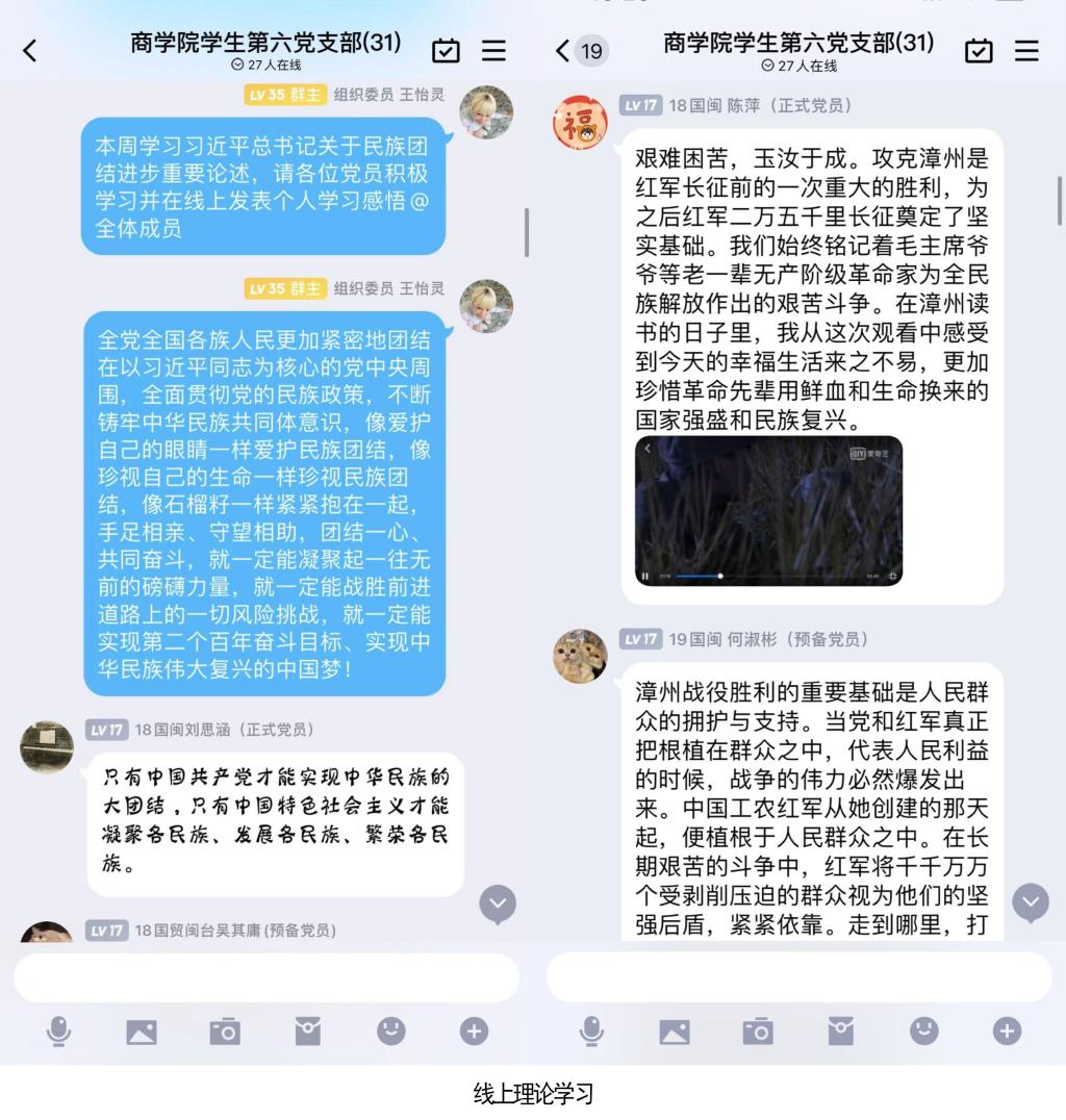 永利23411集团学生第六党支部始终坚持以习近平新时代中国特色社会主义思想为指导,将政治理论学习当作支部的一项重要政治任务,每周定期开展理论学习。通过“六学”并举(分列专题重点学、依托教材灵活学、集中研讨互动学、组织党课深入学、实地调研启发学、网络党校自选学)的形式,推进学习向深度广度拓展,至今已开展近60次的集中理论学习。同时,组织支部党员大胆“走出去”,多次前往龙江颂展示馆、中共福建省委临时旧址、漳州市博物馆、闽南革命纪念碑等红色教育基地开展主题党日活动,身临其境地感受红色文化,用脚步丈量革命先辈的历史足迹,用心灵感悟红色文化的独特魅力。