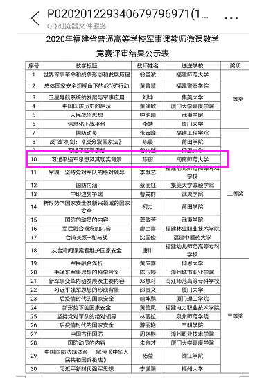4.1.2党支部书记获得福建省普通高等学校军事课教师微课教学竞赛二等奖