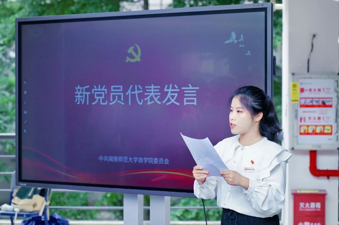 2021级国际经济与贸易专业周兰雨同志作为新党员代表,向伟大的党致以最高的敬意,并代表全体新党员郑重承诺:一是立长志不常立志,以对党忠诚的最优品质,翻过“信念动摇”之山。牢记入党誓言,坚定听党话、跟党走的政治信念,持续强化理论武装,确立正确的人生目标,在当今“乱花渐欲迷人眼的”的社会思潮中,铁心跟党走、矢志而不移地做政治上的“明白人”。二是去“栽树”不去“乘凉”,以实干担当的最美姿态,翻过“躺平摆烂”之山。不断提升“七种能力”,增强“八种本领”,保持初生牛犊不怕虎的劲头,不断接受磨练考验,锤炼过硬能力素质,在实干中“强筋壮骨”,充分发挥先锋模范作用,挑起新时代赋予青年的“重担”。三是走大路不抄小路,以严格自律的最强防线,翻过“贪欲腐化”之山。做到心有所畏、言有所戒、行有所止。牢牢拧紧人生观、世界观、价值观这个“总开关”,始终抓紧纪律这个“护身符”,严守“铁律”,远离“禁区”,将党的纪律要求作为自己的行动准则,始终做到心中有党、心中有纪、心中有责。